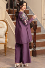 Khaddar Embroidered Shirt with embroidery on sleeves and Plain Flapper Trouser.