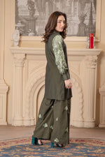 Khaddar Embroidered Shirt with embroidered sleeves and Embroidered Trousers.