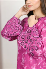 Printed shirt with schifilli embroidered borders on daman, sleeves and neckline
