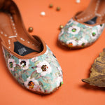 - Step into elegance with our handcrafted floral khussa, featuring delicate embroidery, sequins, and beadwork. Made by skilled artisans with a cushioned sole and soft leather lining for all-day comfort. Perfect for weddings, festive occasions, or adding charm to your everyday look.