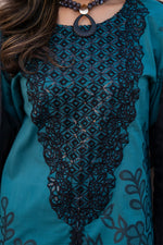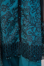 Shirt with schifilli sequence embroidered patch on neckline, daman and sleeves-embellishment on front.