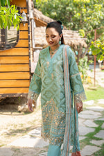 Organza Jacquard Embroidered Suit with Dupatta and Trousers.