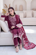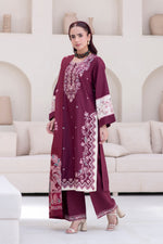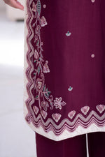 Khaddar embroidered shirt with embroidered sleeves-embellishment on neckline.