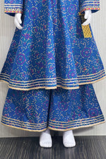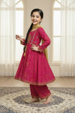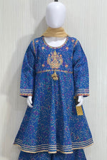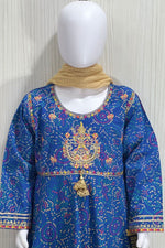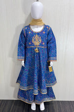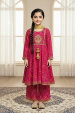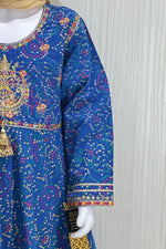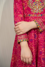 A printed frock-style shirt with embroidery on the neck, tussel on the front sequenced work on the front side, daman and sleeves.